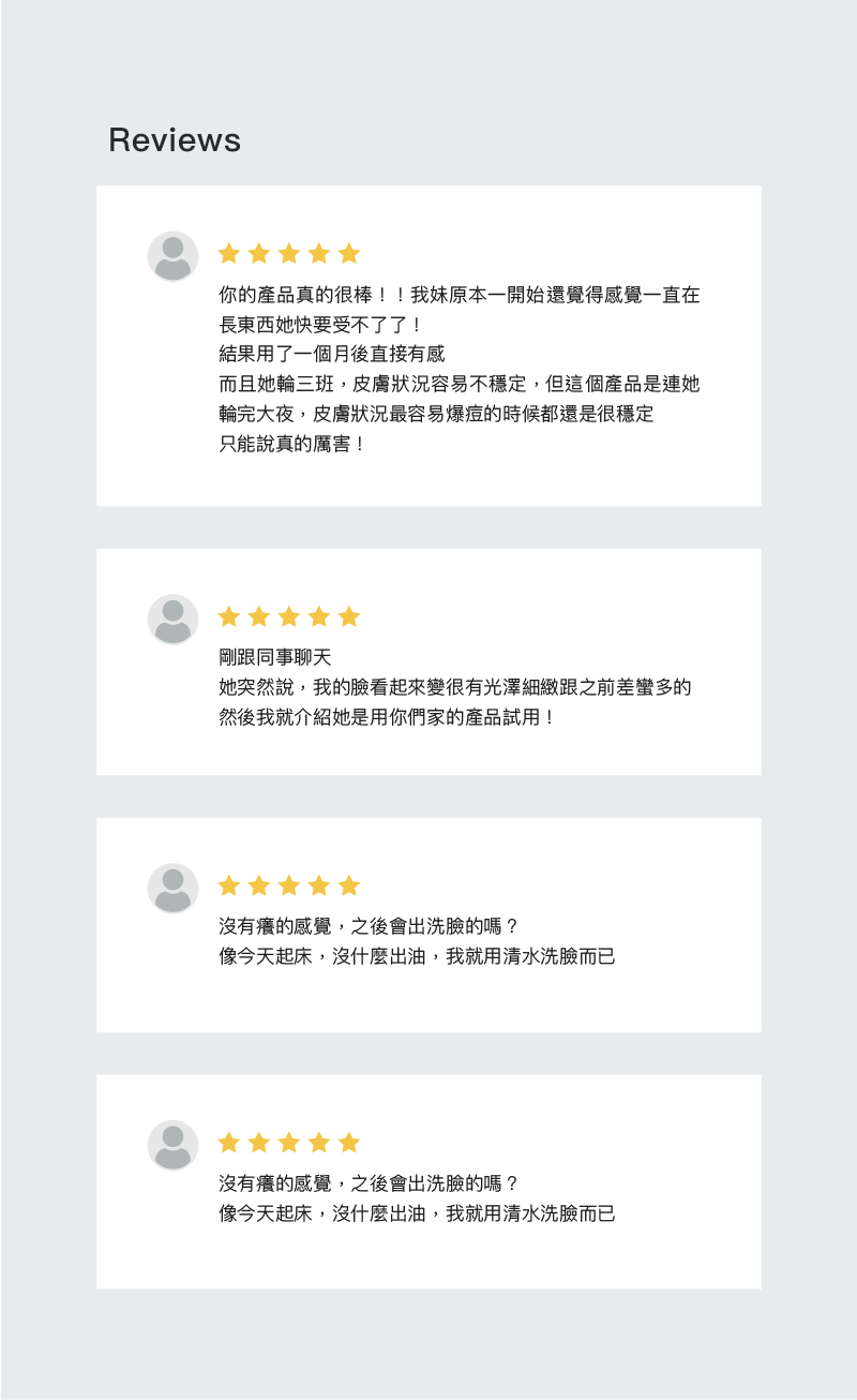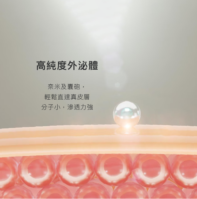 • 關鍵成分:獨家奈米植萃-「外泌體」、「靈芝」、「黃耆」、「丹參」、「珍珠粉」,多效合一