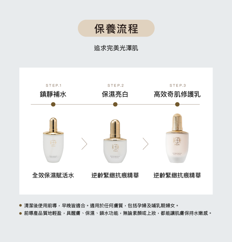 • 解決乾癢、細紋、暗沉問題,提升肌膚細緻力